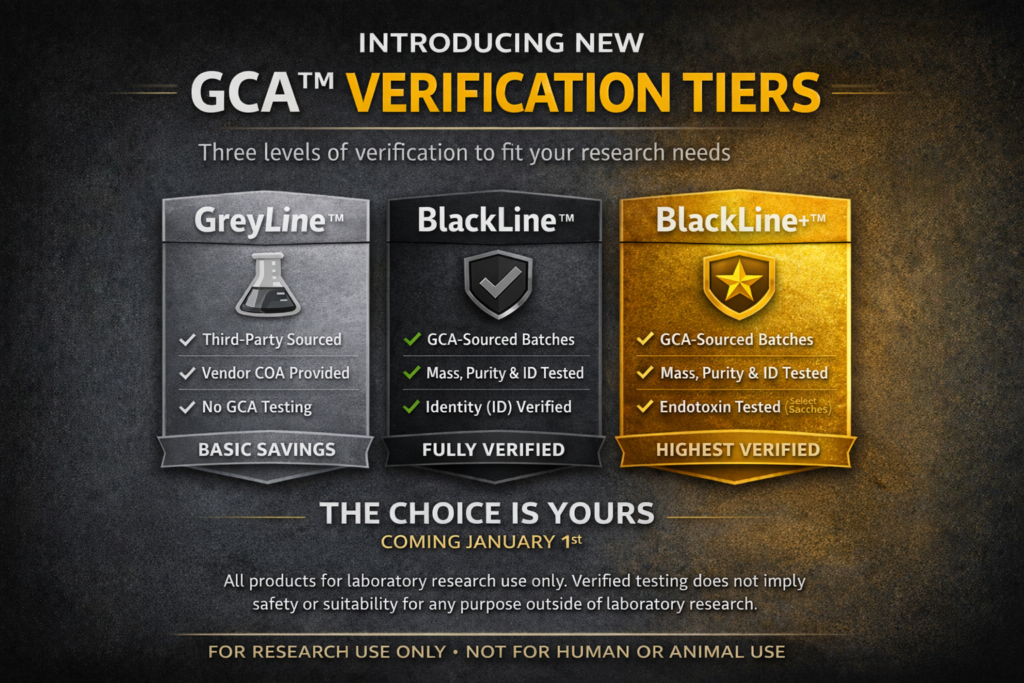 Product verification tiers describe documentation and analytical testing only and do not imply fitness for any specific application beyond laboratory research.
